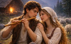 Kur u burrërua, e ndjeu se duhej të kërkonte fatin përtej maleve që e kishin rritur. Hodhi në sup një trastë me pak bukë, vuri fyellin në brez, shokun e vetëm që nuk e kishte tradhtuar kurrë, dhe u nis drejt së panjohurës.