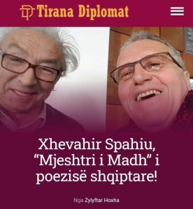 Xhevahir Spahiu është shkrimtar i njohur shqiptar, një nga poetët më të spikatur të poezisë shqipe qoftë në idetë dhe mesazhet që mbart, por edhe në një teknikë dhe në ngjyrë të veçantë dhe të pakrahasueshme me poetë të tjerë.